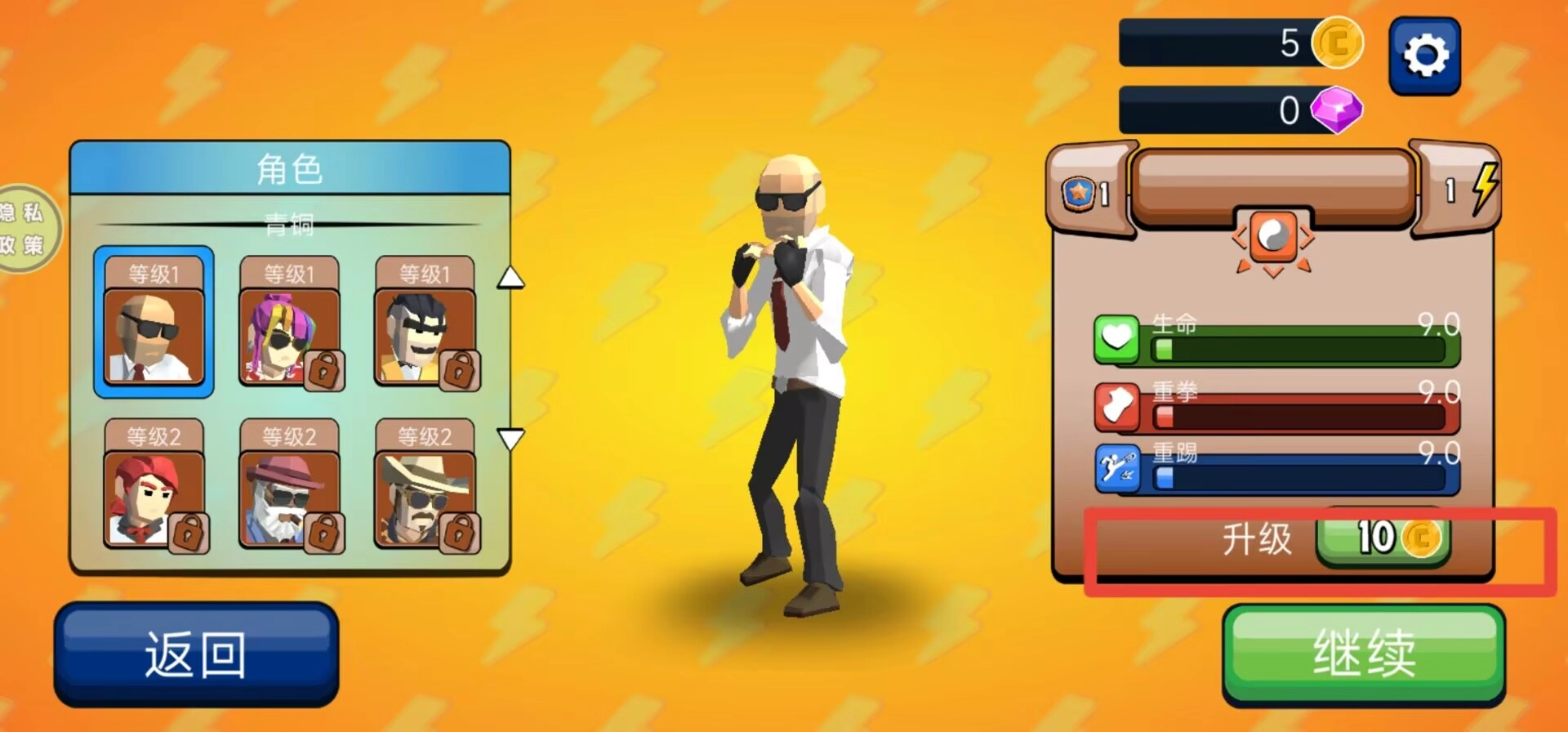 1、从主界面选择升级功能进入强化页面,右侧设有生命值、重拳和重踢这三项属性提升的选项。