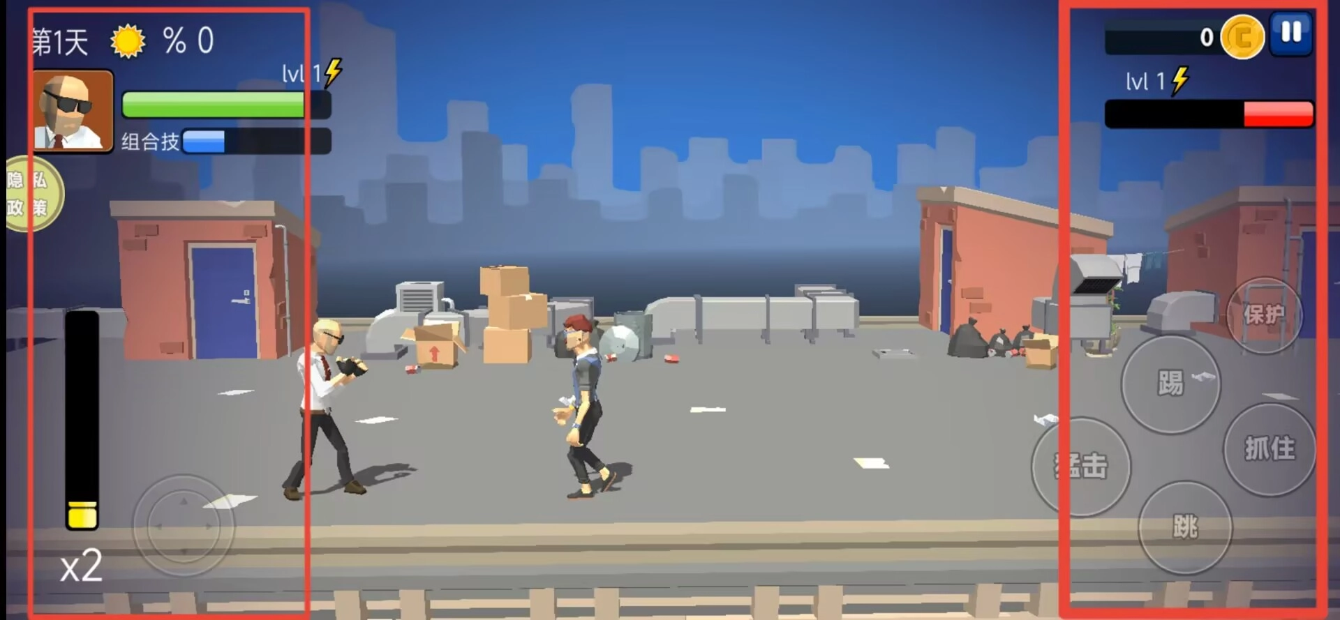 3、场景互动机制:能抓取路灯、垃圾桶等环境道具发起攻击,在特定区域还会触发墙壁反弹、天台坠落等特殊战斗事件。