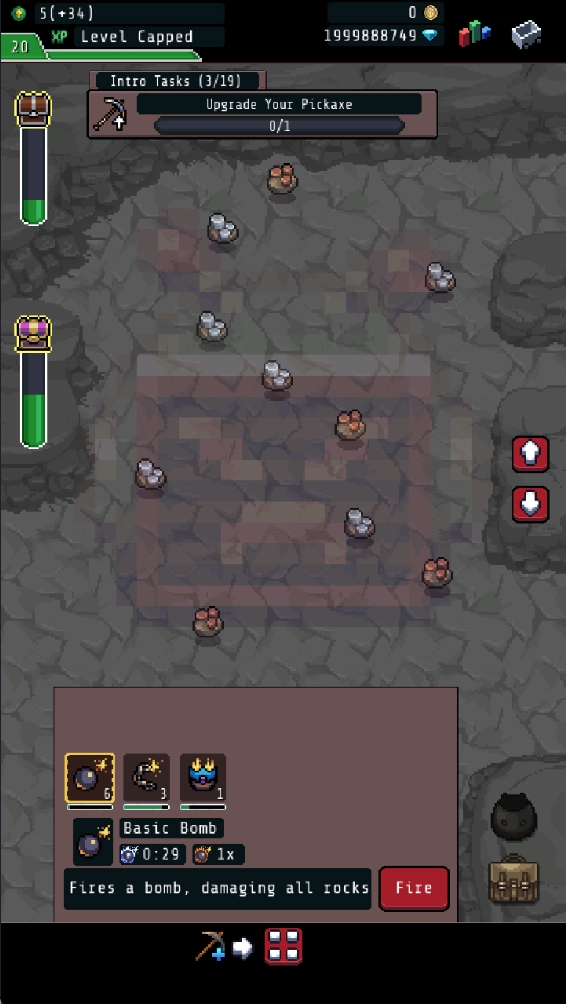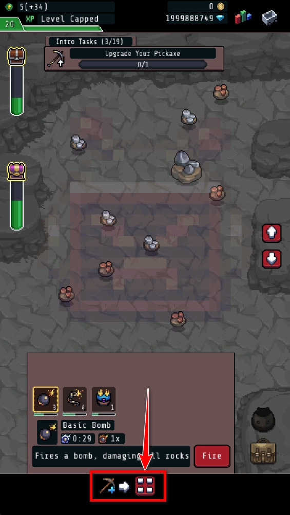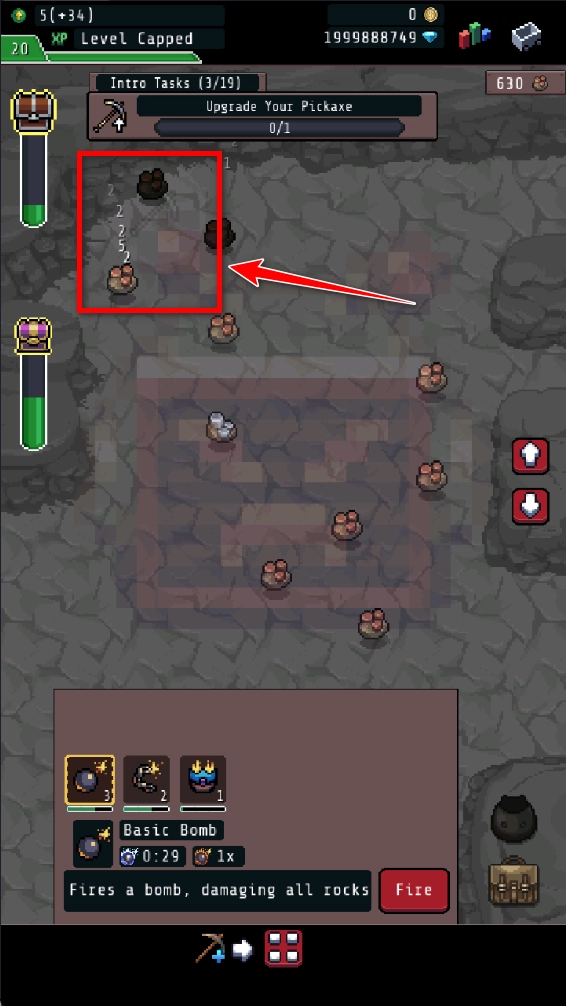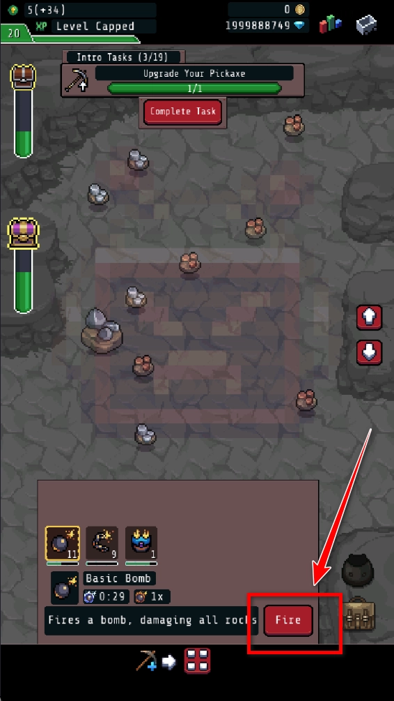 任选一个炸弹,点击这个按键,就可以炸掉矿物。