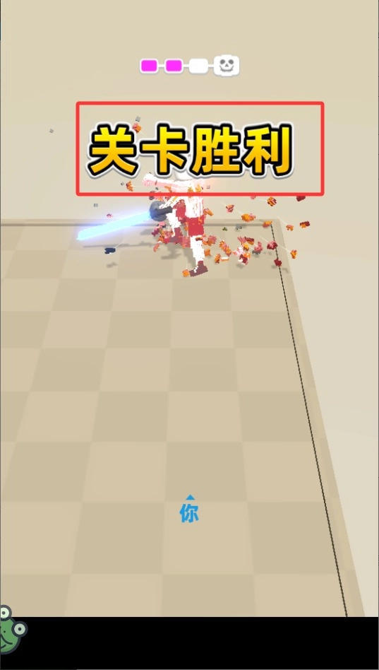 4、成功击败敌人后会出现胜利动画,别忘了领取经验值奖励,这样就能解锁更炫酷的激光剑皮肤和特效啦。