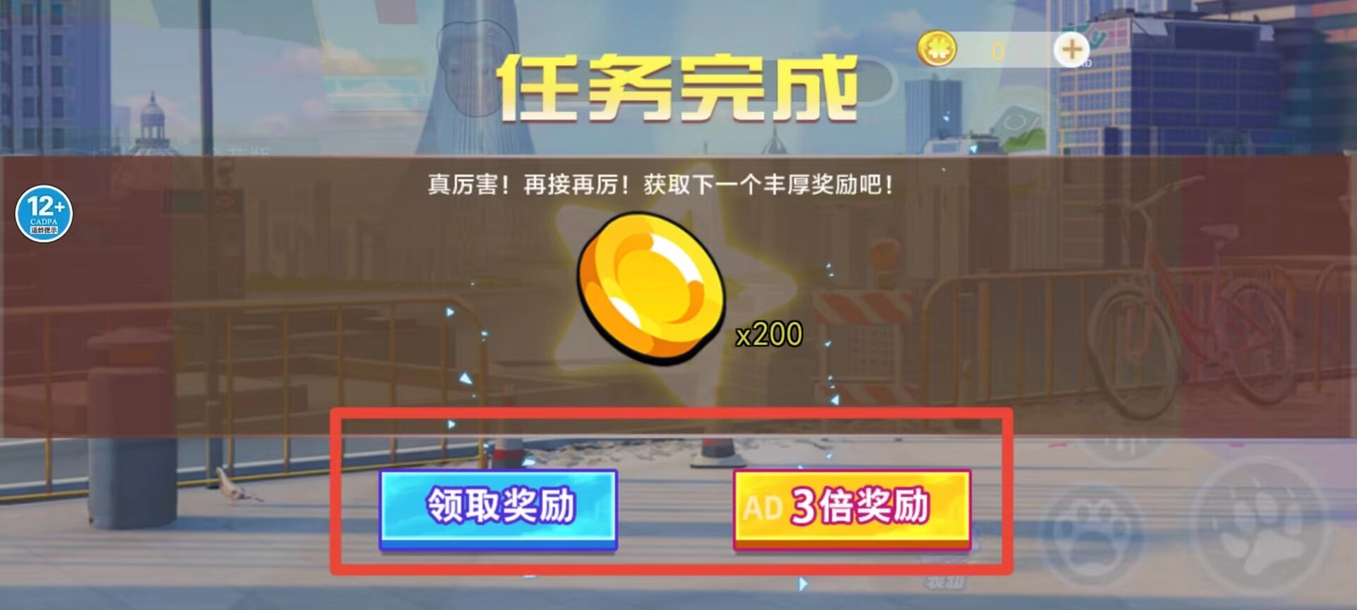2、任务成功完成后,奖励结算界面会自动弹出,确认领取后金币将立即计入账户,进程也会随之继续。