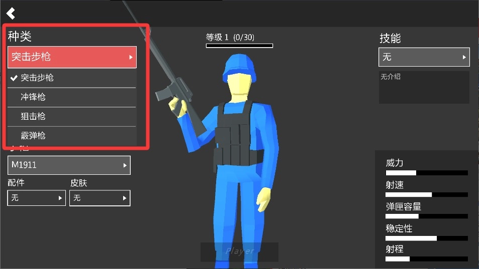 2、选定模式后会进入装备界面,步枪、狙击枪、手雷等装备均可使用,初期使用默认的突击步枪即可,因其后坐力较小,更容易上手。