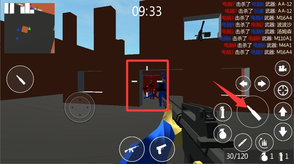 3、左侧的虚拟摇杆用来操控人物移动,右侧的按键则负责射击与切换道具。碰到掩体时记得蹲下躲避,投掷手雷前要计算好抛物线轨迹。
