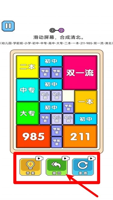 1.滑动合并玩法:用手指滑动积木,把学历相同的积木合并成更高等级的学历,一步步升级,最终目标是合成顶尖985高校,玩法既简单又有持久的趣味性。