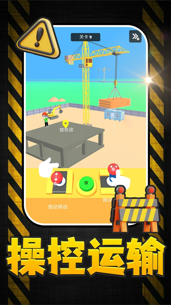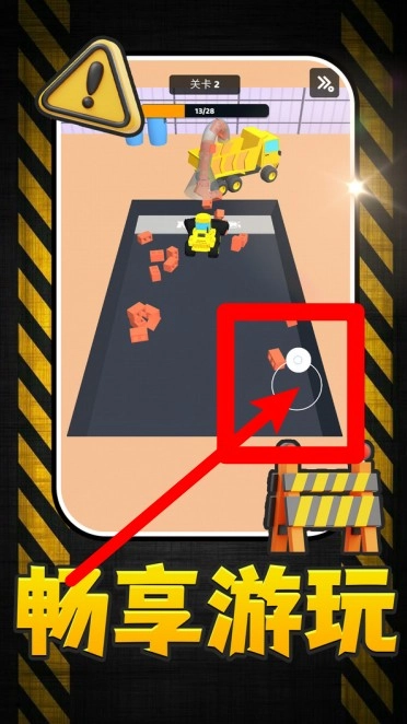 3.右下角的虚拟摇杆是主要的移动控制工具,通过拖动它就能精准操控车辆收集砖块,并将砖块运送至目标区域,从而完成当前的收集任务。