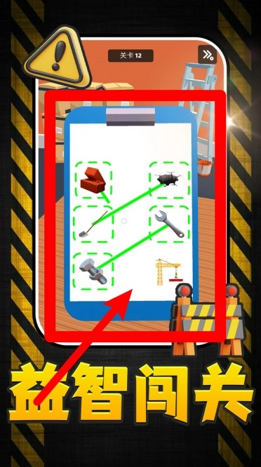 2.中央的连线面板需将工具与对应的对象进行匹配,按照正确逻辑完成所有绿色连接后,即可判定通过并进入下一阶段。