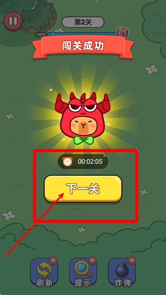 3.完成当前关卡后,点击“下一关”按钮就能开启新的挑战,系统会自动记录你的通关时间,同时保存当前的进度数据。