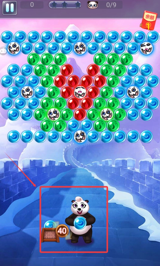 3,点击开始,利用熊猫手中的球来消除泡泡,就能完成通关。