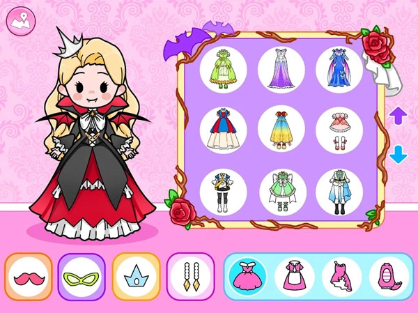 1、玩家能够自主挑选各类服装与配饰,为公主塑造独具特色的造型。