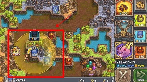 选中防御塔能够查看其攻击范围,还可以对其进行升级强化或出售,以此来优化战术策略。
