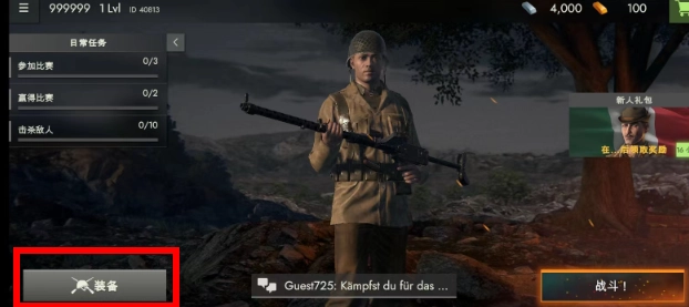 2、点击下方图标可切换人物,右侧能选择枪支进行装备,选好后返回主页面,点击上图右下方的【战斗】按钮。