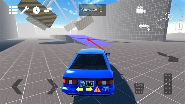 5.汽车方向的调整可通过点击屏幕左下角的箭头按钮来实现。