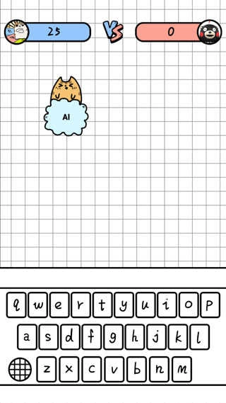 4、这是一种十分有趣的打字闯关玩法,我们需要依据任务的指引,通过敲击键盘,打出对应的英文字母。