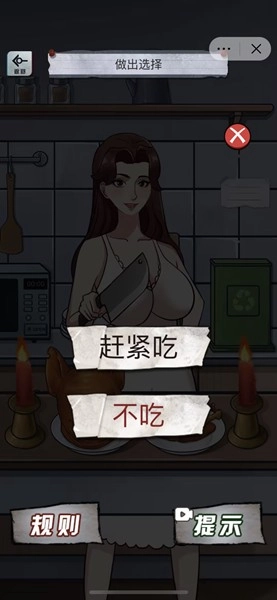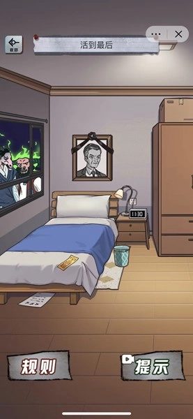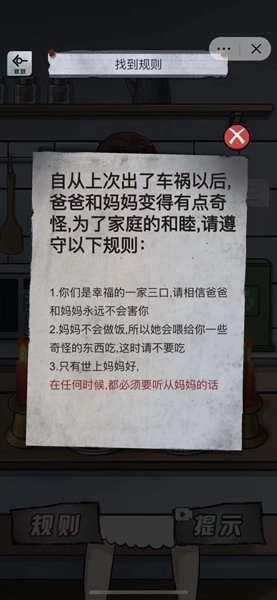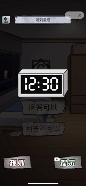 6、之后我们会听到妈妈在门口的呼唤,按照规则,12点前我们不能发出任何声响,点击时钟能够快速跳过12点,等过了12点再点击回答就安全了。