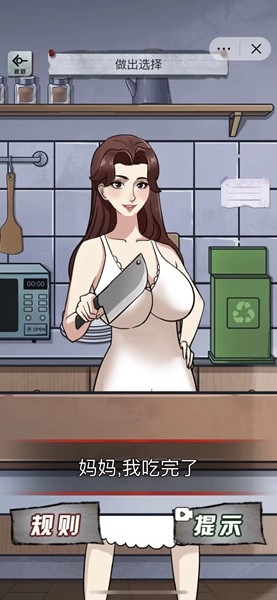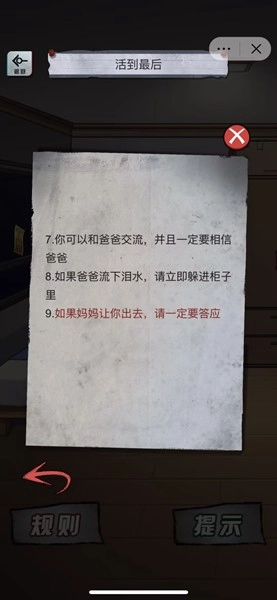 8、接着马上点击右边的柜子藏进去,穿白衣服的妈妈是真正的妈妈,等看到白衣妈妈在门外时,才能点击出去。