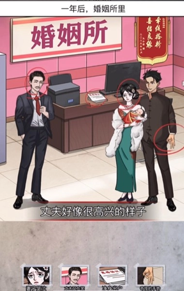 3、点击女人的表情,桌上的离婚书,左边男人的表情,点击男人的手可以看到ok手势。