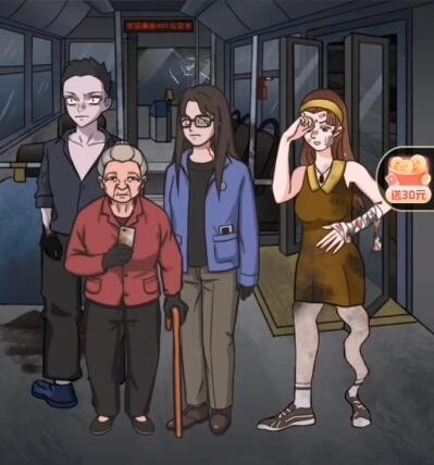 3、找出乘客身上的五处诡异之处,依次是:破碎的眼睛、生锈的部位、黑色的手、假肢以及脖子上的血迹。