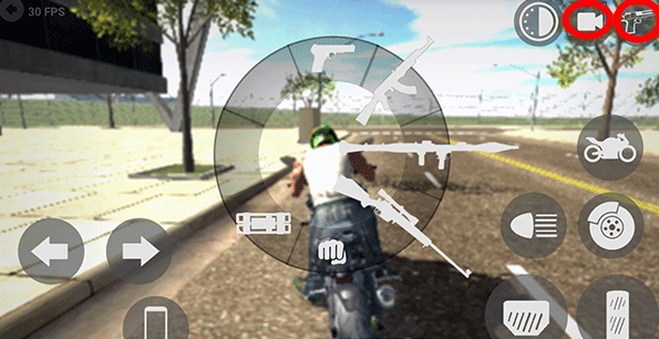 3、点击枪支图标,即可自由选择枪支;点击摄像图标,则能切换至开车第一视角,带来更强的沉浸感。