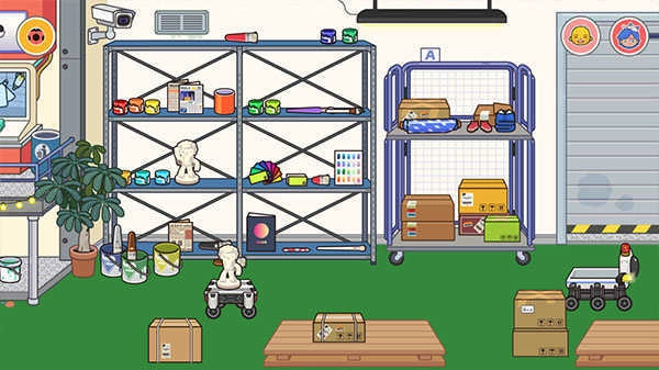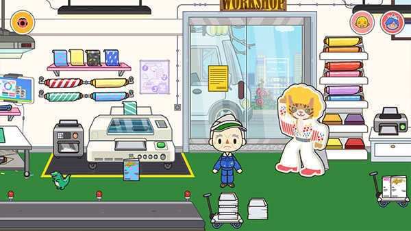 3、点击进入印刷厂,门口立着一个大型猫咪立牌,还有一位管理叔叔正在操作打印机器。