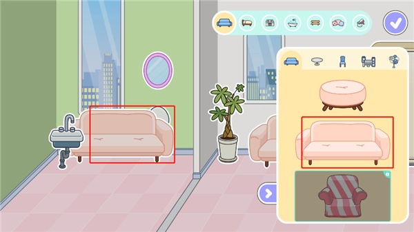 4、这里为用户准备了极为丰富的家居品类,像沙发、桌子、洗手台、床、浴缸之类,玩家能够自主挑选心仪的家居。