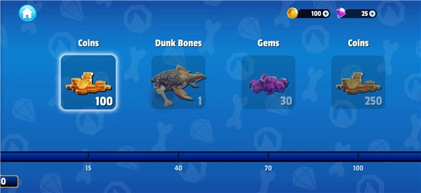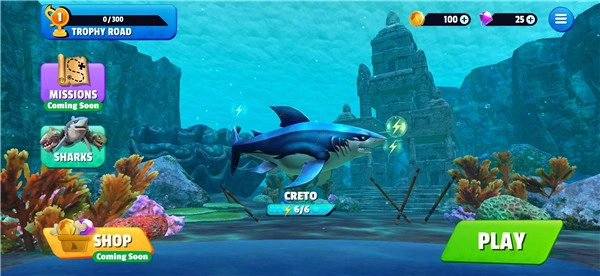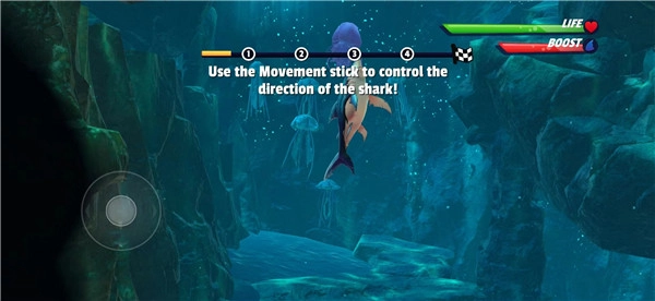 4、完成50个任务,在寻找宝物的过程中获取金币与宝石,这些资源可以用来升级你的鲨鱼,或者购买特殊的救生道具!