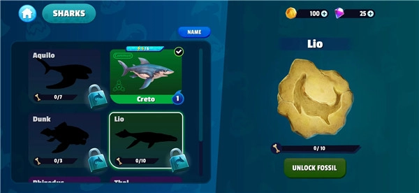 4、提升等级可以解锁多种全新的鲨鱼,并且这些鲨鱼均为新推出的远古生物。
