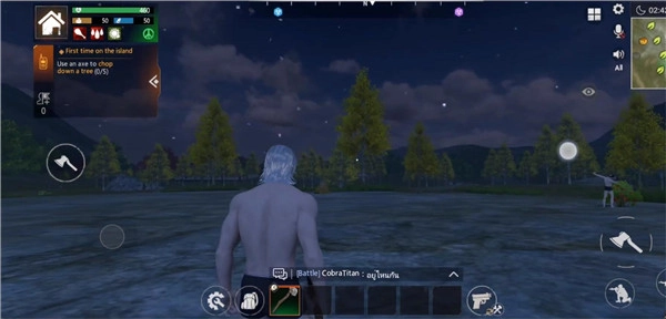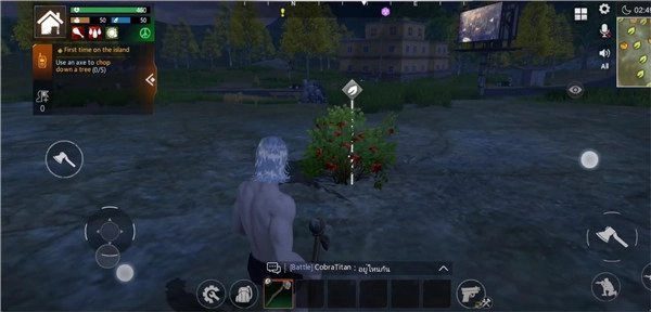 3、靠近树木、灌木、石头等各类物体时,会显示可采集的图标,可交互的物体选择丰富,几乎所有物体都能进行交互操作。