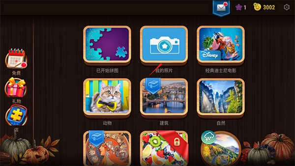 4、每个类型下都有若干张图片可供挑选,玩家可以点击某一类型的拼图,从中选择自己想要的一张。
