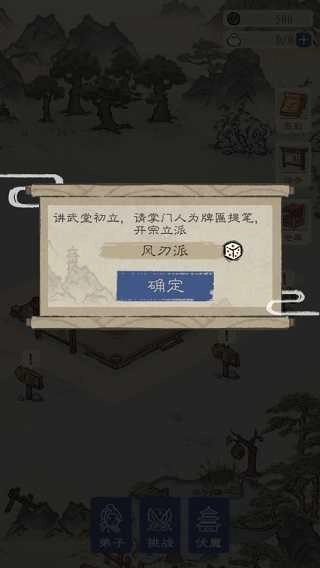 以上门派的基础建设已大致完成。接下来该学习战斗相关的内容了,目前门派周边常有恶狼出没,需要派遣弟子去进行清剿。你可以点击“任务”按钮,在任务榜里查看具体的任务信息,然后安排合适的弟子前往执行清剿任务。每次参与战斗都能让弟子获得经验值,从而提升他们的能力,而且挑战成功后,还会有其他道具掉落。