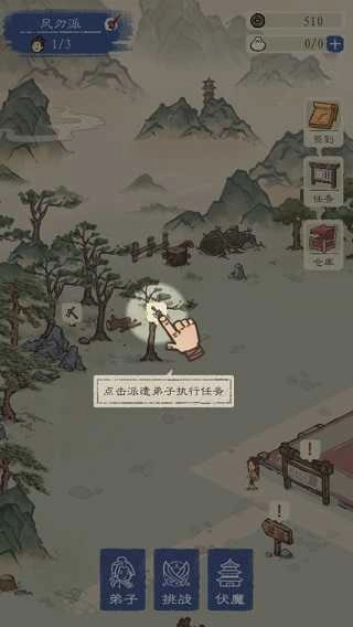 点击派遣弟子去山林中,或者石场执行任务,如图: