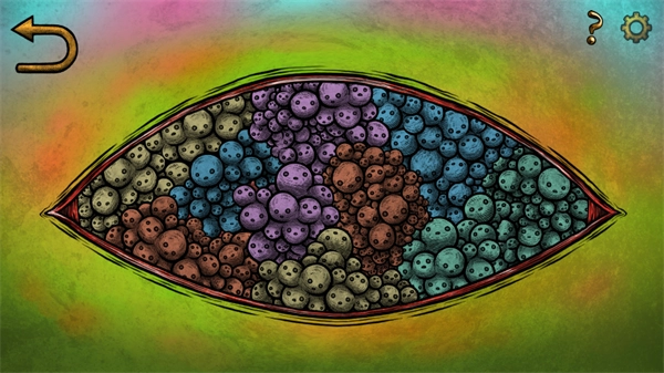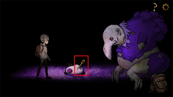 3、向左行进,当遇到长着许多脚的生物后会出现图示界面,该生物会短暂闪现带有颜色的石头,后续似乎需要我们点击相同颜色的石头来消除它们(由于我当时是快速随意点击,所以对此不是十分确定)。完成这一步后获取梳子,接着把类似拉链头的物品向右拉动。
