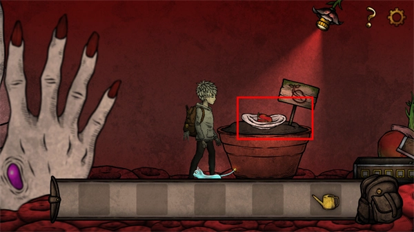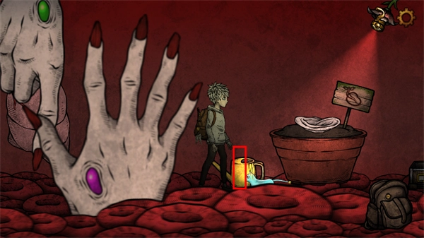 5、进门后径直向右走,剧情结束后逗猫棒会放在书包里,接着继续往右走,留意手背上带有宝石的手指,右侧有一个箱子,按照蓝3、紫8、红4、黄2、绿1的顺序点击,就能打开箱子并获取红色种子。