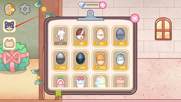 8、要是想拥有更多可爱的猫咪,就点击旁边的猫咪按钮,然后在里面挑选并购买自己喜欢的蛋;