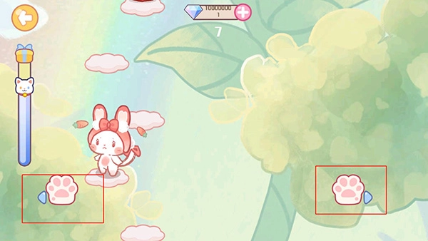4、就能和猫咪互动玩耍啦,点击左右两侧的猫爪,帮助猫咪爬到最高层;