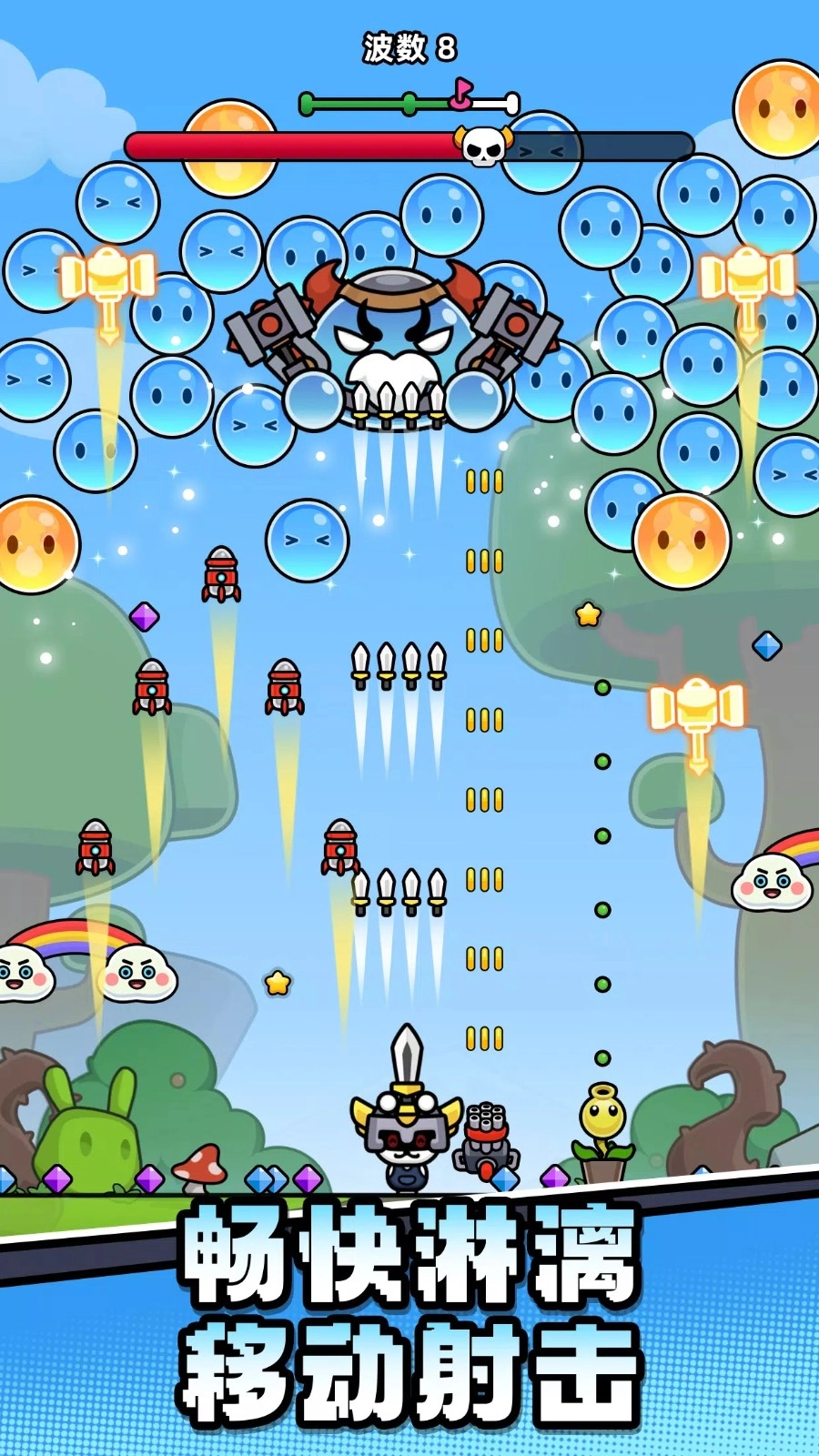 踏入充满奇幻色彩的《史莱姆必须死》世界,准备好迎接从各个方向蹦跳而来的顽皮史莱姆吧!挑战强大的史莱姆首领,夺回人类的领地。轻松休闲的2D竖版射击割草玩法,将为您带来无穷的乐趣与刺激!