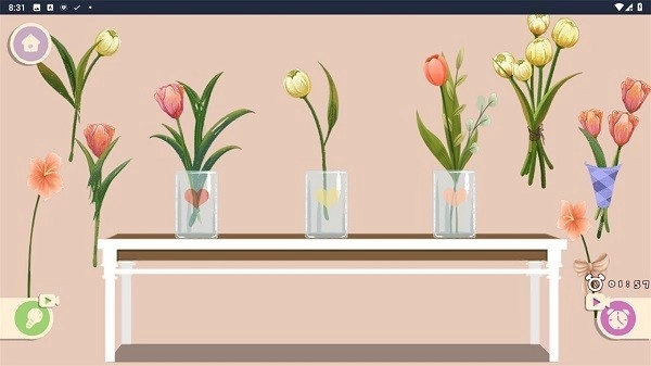 这是第一关,也是最容易通过的关卡。玩家首先需要将左边那朵带叶子的红色花,以及右边那三朵簇拥在一起的花,一同放入左边的花瓶中;接着,把左边的黄色花和右边那几簇黄色花放进中间的花瓶里;最后,将右边剩下的浅红色花放置到右边的花瓶中就完成了。