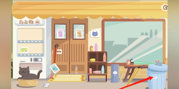 3)把所有饮料都放进贩卖机里,其中有一瓶可乐藏在小猫身后,只要把小猫挪开就能看到它了