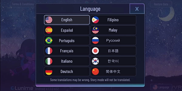 1、启动加查love应用后,点击界面右下角的【Language】选项来切换语言。