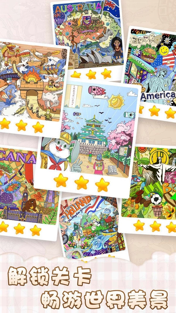 2、丰富多样的关卡设计,融入了知名地标、建筑与历史遗迹的精致画面。
