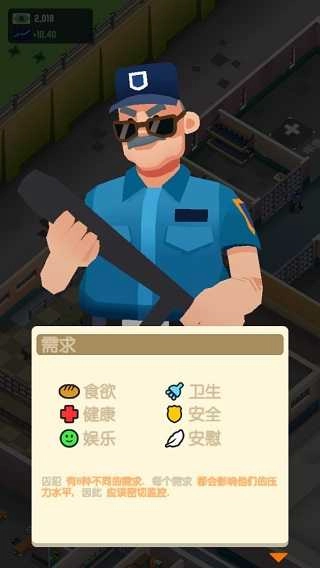 通过对打架斗殴行为的有效管控来提升自身声望,借助智能化手段精准把握囚犯的各类需求,并及时予以满足。为狱警配备顶尖的安保装备,以应对看守危险囚犯的任务,在必要情况下可对其实施单独监禁。
