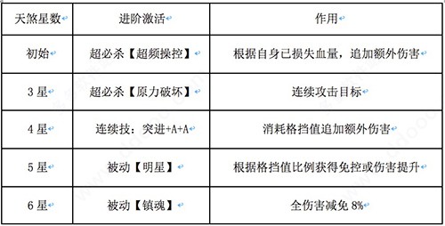若星的核心打法来源于她的被动:明星。当格挡值低于50%时,获得免疫控制,但受到伤害增加30%;当格挡值高于50%时,自身伤害提高20%。因此若星既有稳定高输出的套路,也有无视控制背水一战的资本。(小提示:若星不会因为格挡值被打空而眩晕)