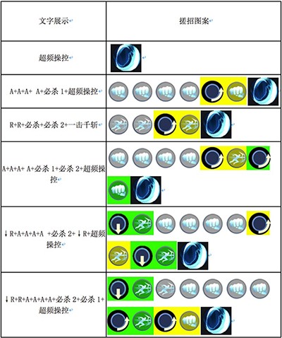图表里【拳头】对应A、【突进】对应R,图标连起来高亮就表示搓招。
