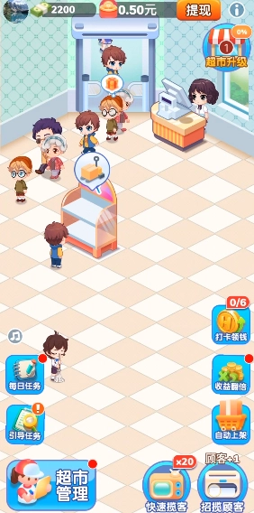 玩家能够借助持续升级超市、提升商品品质、吸引更多客流,从而达成收益的最大化。
