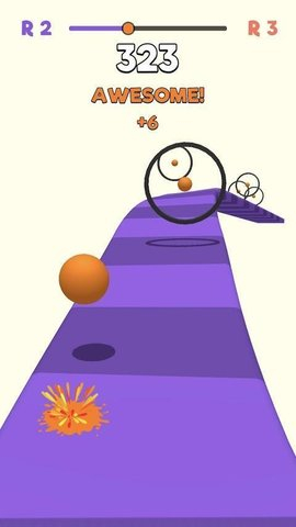 玩家需要操控小球穿过圆圈,期间得避开各种障碍,让小球能全力冲刺。