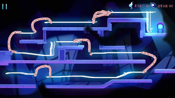 这一关开始出现了迷雾,迷雾会在走过的地方自动消散,唯一的难点在于不清楚前方的路况,很容易失足掉落致死。