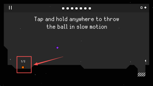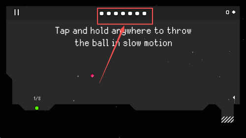 选择关卡时,在游戏界面查看当前1/8的关卡进度,随后点击“Tap and hold anywhere to throw”的提示,即可进入投球准备状态。