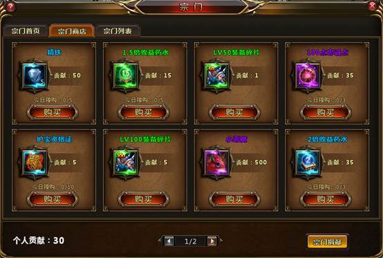 宗门商店:在宗门商店里,各位宗门成员能够利用宗门贡献兑换到各种各样的稀有道具。