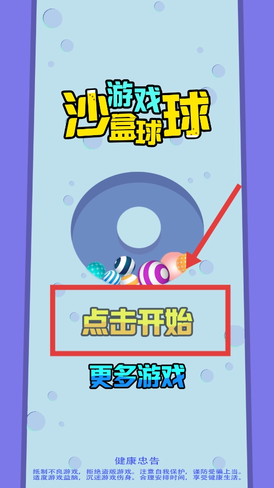 进入游戏的初始界面后,能看到标题和彩色小球,点击开始按钮即可开启游戏挑战。