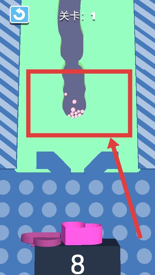 进入关卡1的场景后,留意包含通道与小球的区域,通过操作粉色道具使小球顺着通道滚动,试着让它到达目标位置。
