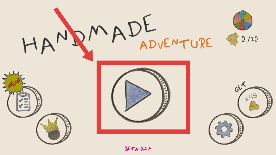 进入游戏主界面后,找到那个带有播放图标的圆形按钮,点击它就能开启手工冒险之旅了。